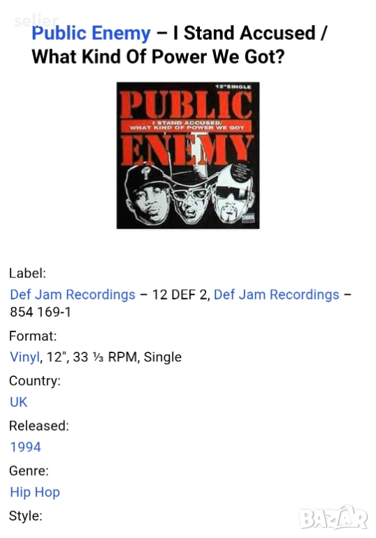 Public Enemy ‎– I Stand Accused / What Kind Of Power We Got? MAXI SINGLE 12 Издание 🇬🇧 UK 1994г Ст, снимка 1 - Грамофонни плочи - 53262723 Public Enemy ‎– I Stand Accused / What Kind Of Power We Got? MAXI SINGLE 12 Издание 🇬🇧 UK 1994г Ст, снимка 2 - Грамофонни плочи - 53262723 Public Enemy ‎– I Stand Accused / What Kind Of Power We Got? MAXI SINGLE 12 Издание 🇬🇧 UK 1994г Ст, снимка 3 - Грамофонни плочи - 53262723 1/3
