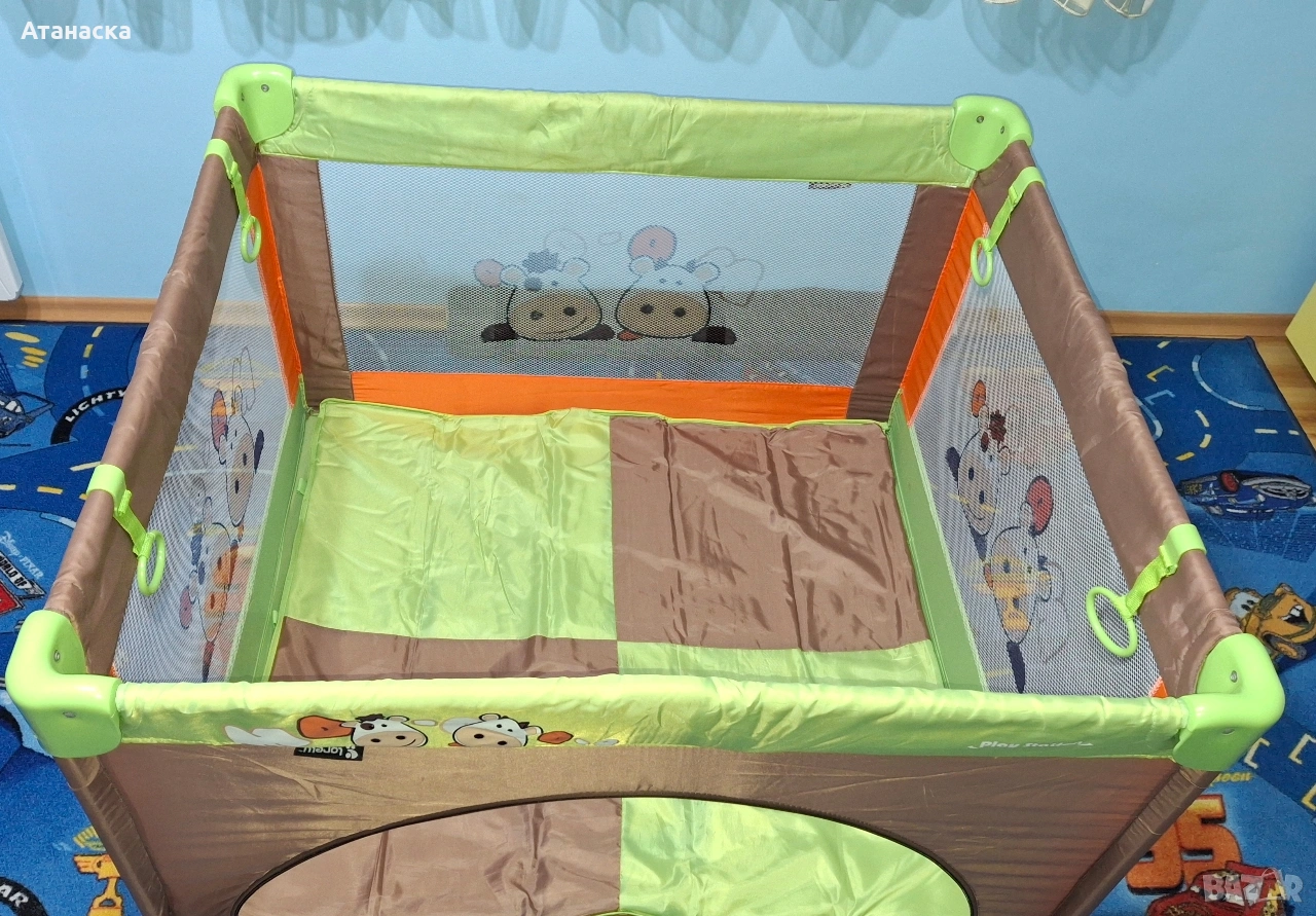 Детска кошара за игра Lorelli 100х 100 см. Много запазена . Забележка- не работи ципът на капака за отваряне.