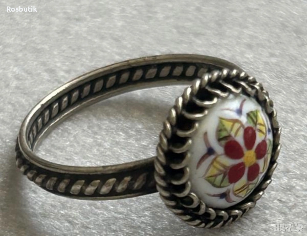 Старинен съветски пръстен рисуван порцелан техника финифт от руско сребро мелхиор. Размер 17мм. Изпращам с еконт или спиди.
