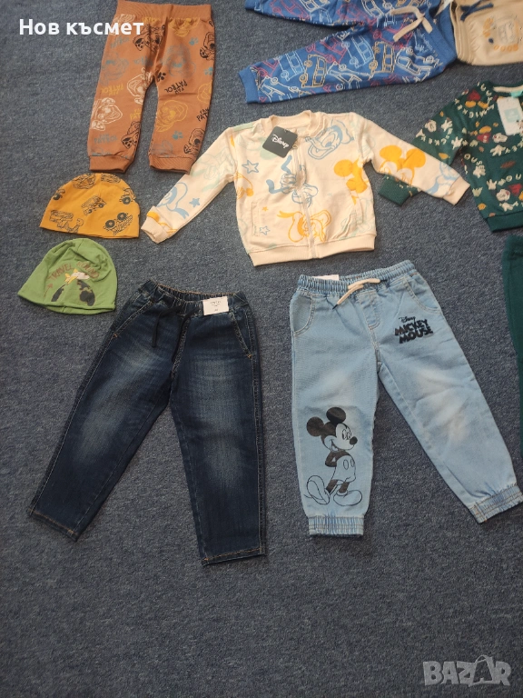 Дънки с Мики Маус, размер 98, нови с етикет. Цена 6,12 евро (12лв)