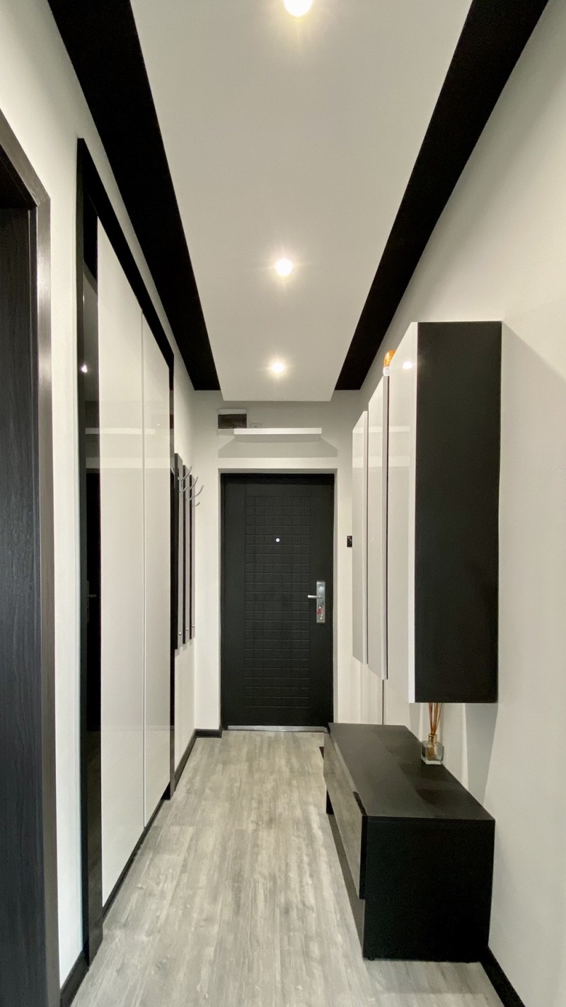 НОВ ЛУКСОЗЕН ДИЗАЙНЕРСКИ АПАРТАМЕНТ! . Намира се до болницата. Напълно обзаведен с всичко необходимо за живеене. Всичко вътре е от много качествени материали, изпълнено много прецизно от реномирани фирми. Мебели- черно огледало,бяло огледало,възможно най големия гланц! Апартамента е изцяло с лед осветление! Командва с дистанционни. Може да се сменя цвета и силата на осветлението. Смарт телевизори с