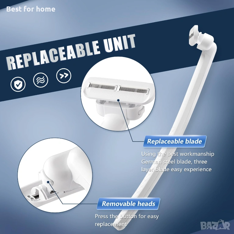 По-бързо, по-безопасно и по-гладко: Нашите мъжки самобръсначки за гръб са изработени от най-добрата немска стомана и използват уникална патентована технология за най-лесно и гладко бръснене. Нашите мъжки тримери за гръб имат уникална неплъзгаща се лента, която може да се омекоти с вода. Разресвайте гърба си, за да премахнете окосмяването, без да причинявате болка.