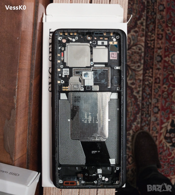 Оригинален екран, свален е от нов телефон, който бе намокрен още при първия ден на употреба и спрял да работи. След отваряне имаше лека корозия по снимания куплунг, който бе почистен, но въпреки това екрана не светва при тестове.