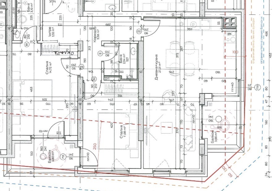 Чистата площ на апартамента е 93.20 кв.м.