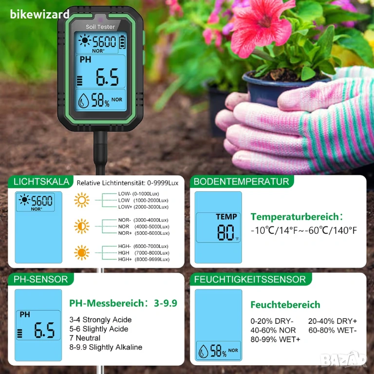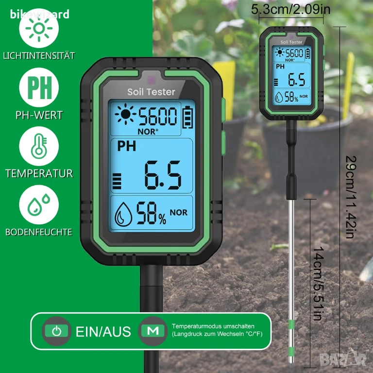 4-в-1 дигитален pH метър за почва с USB-C презареждаем кабел – градинарство НОВ