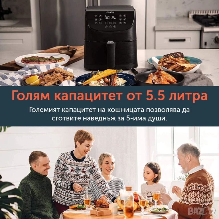 Продавам нов разпечатан Cosori Premium Air Fryer - модел с горещ въздух и капацитет 5.5L в цвят черен. Подходящ за здравословно готвене на вкусни ястия с минимално количество мазнини. Създайте хрупкави и сочни хапки бързо и лесно с този фритюрник.