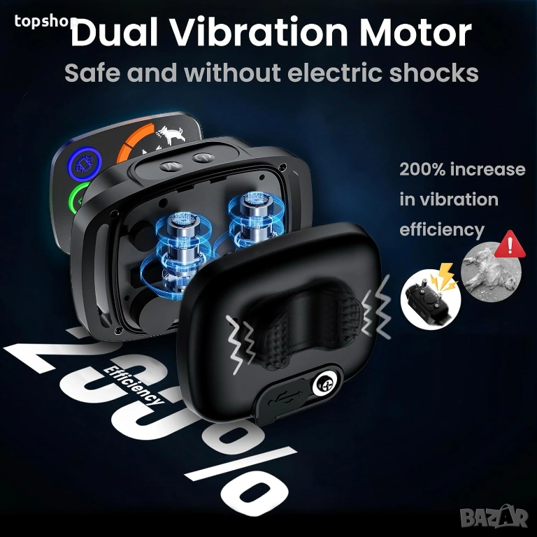 100% Хуманен – Без Електрошок:Устройството работи само чрез звукови сигнали и нежни вибрации.Напълно безопасно за здравето и психиката на вашия любимец.