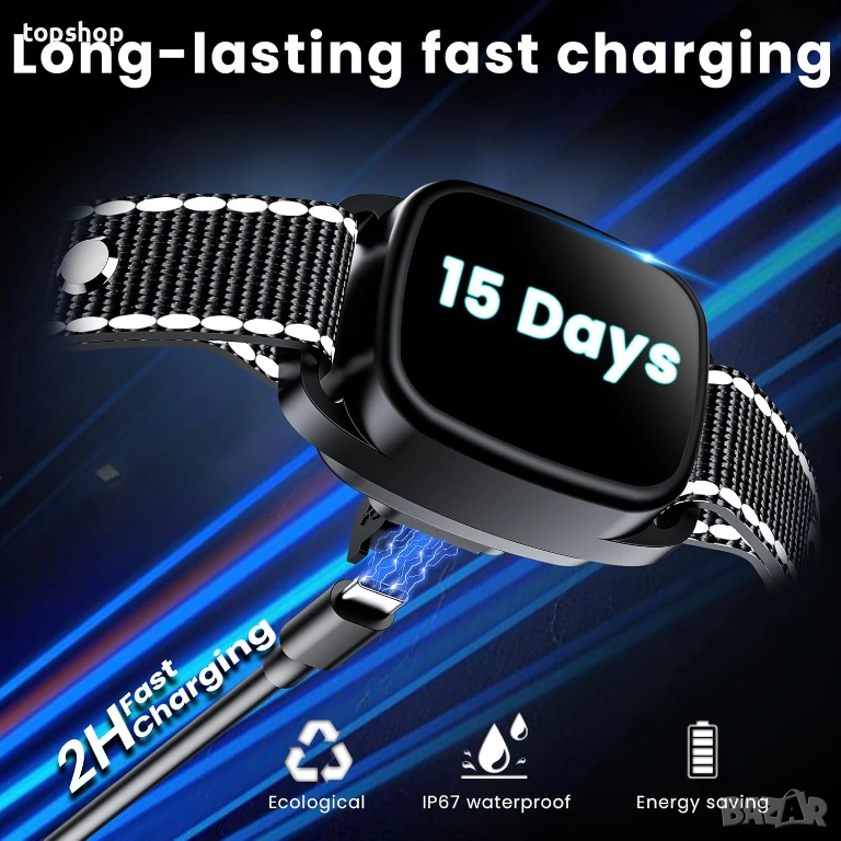 Мощна батерия: Зарежда се бързо през Type-C кабел (само за 2 часа) и издържа до 15 дни с едно зареждане.