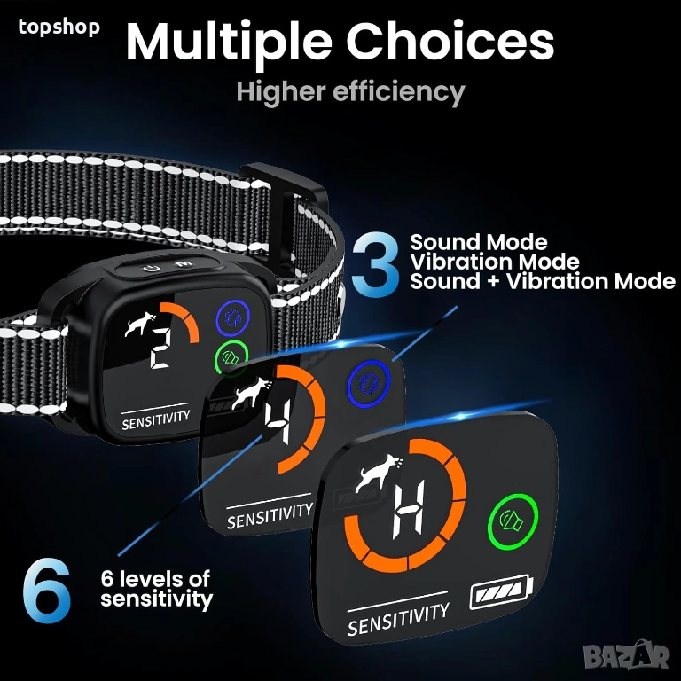 3 Режима на работа: Можете да избирате между Звук (Beep), Вибрация (Vibration) или комбиниран режим (Beep+Vibration) според темперамента на кучето.