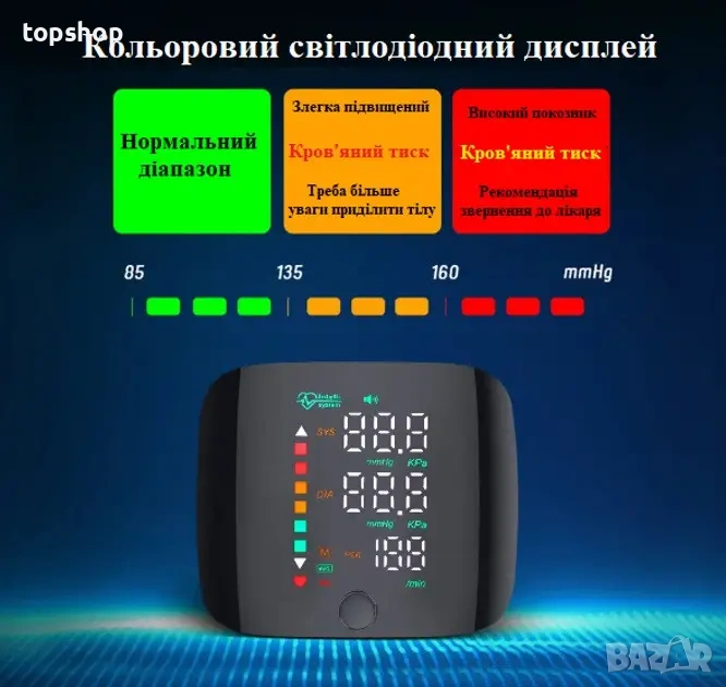Индикатори за здравето: Вграден индикатор за високо кръвно налягане и за правилно поставена маншета.