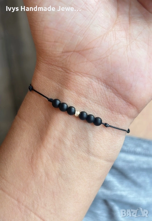 Ръчно изработена гривна от оникс и златно топче проба 585 14 К