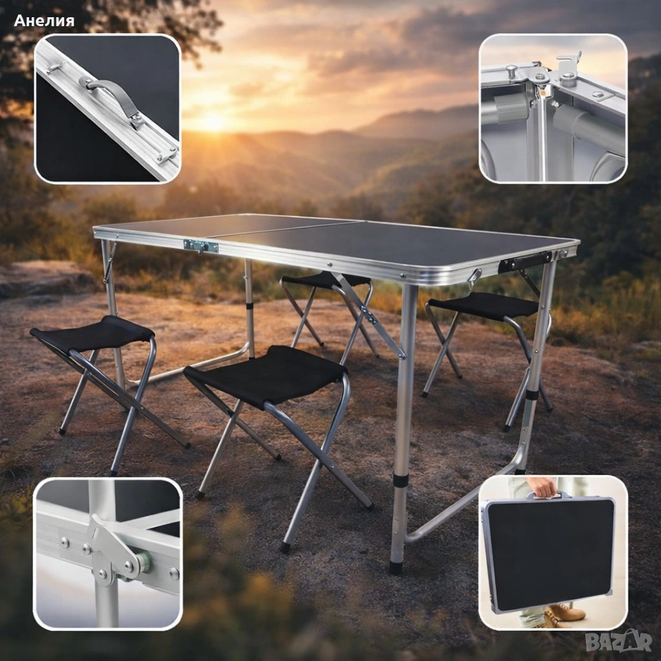 Мобилен комплект маса и 4 стола, снимка 1 - Маси - 53264218 Мобилен комплект маса и 4 стола, снимка 2 - Маси - 53264218 Мобилен комплект маса и 4 стола, снимка 3 - Маси - 53264218 1/3