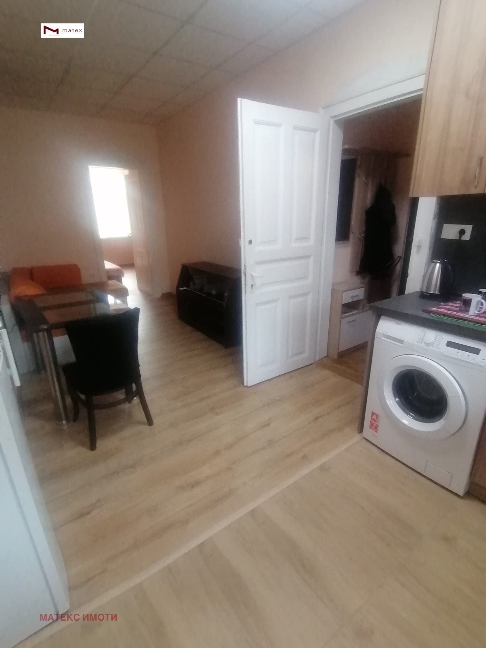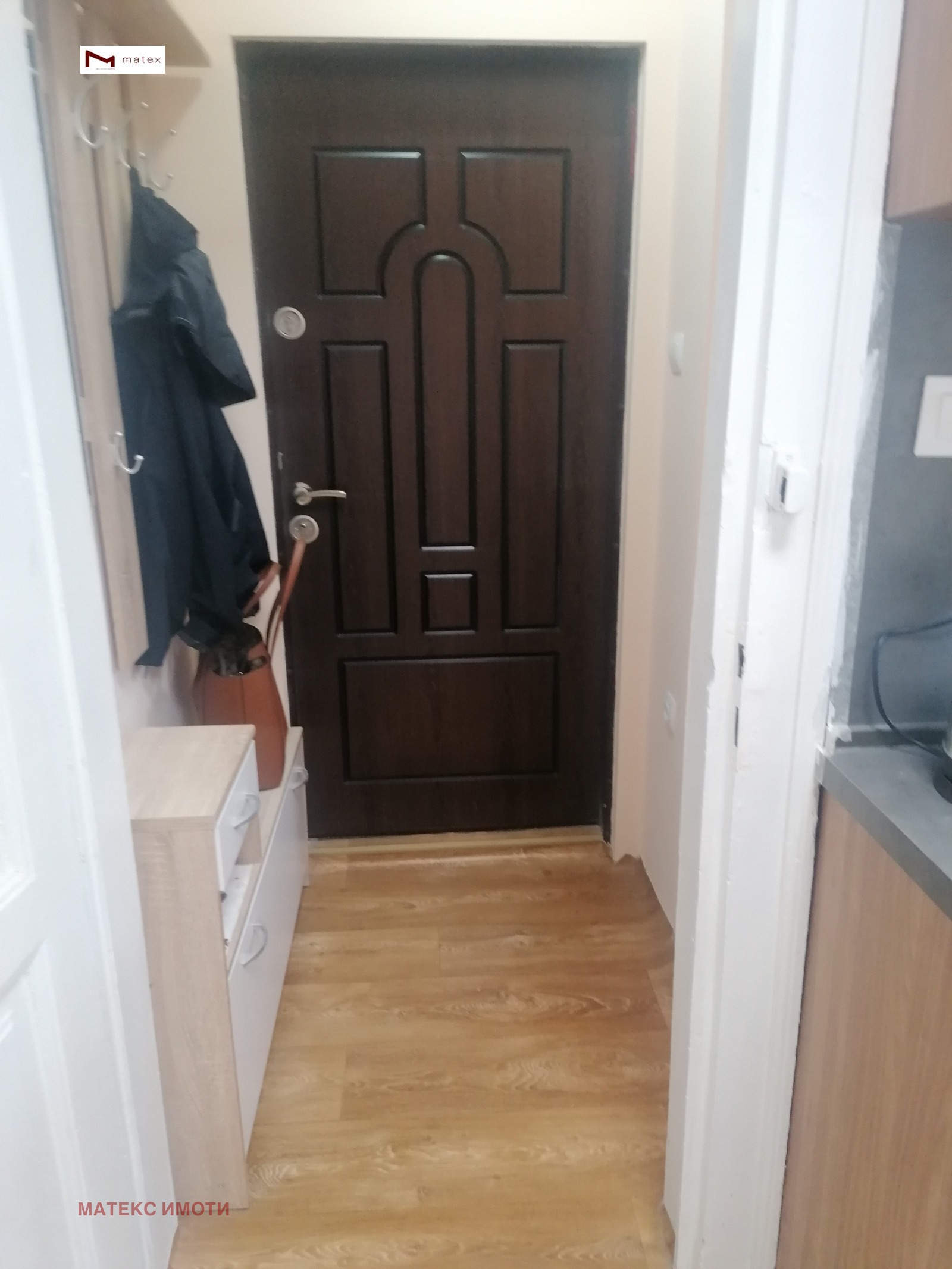 Разпределение: входно антре, хол с кухненски бокс, спалня, баня, тоалетна, голяма тераса