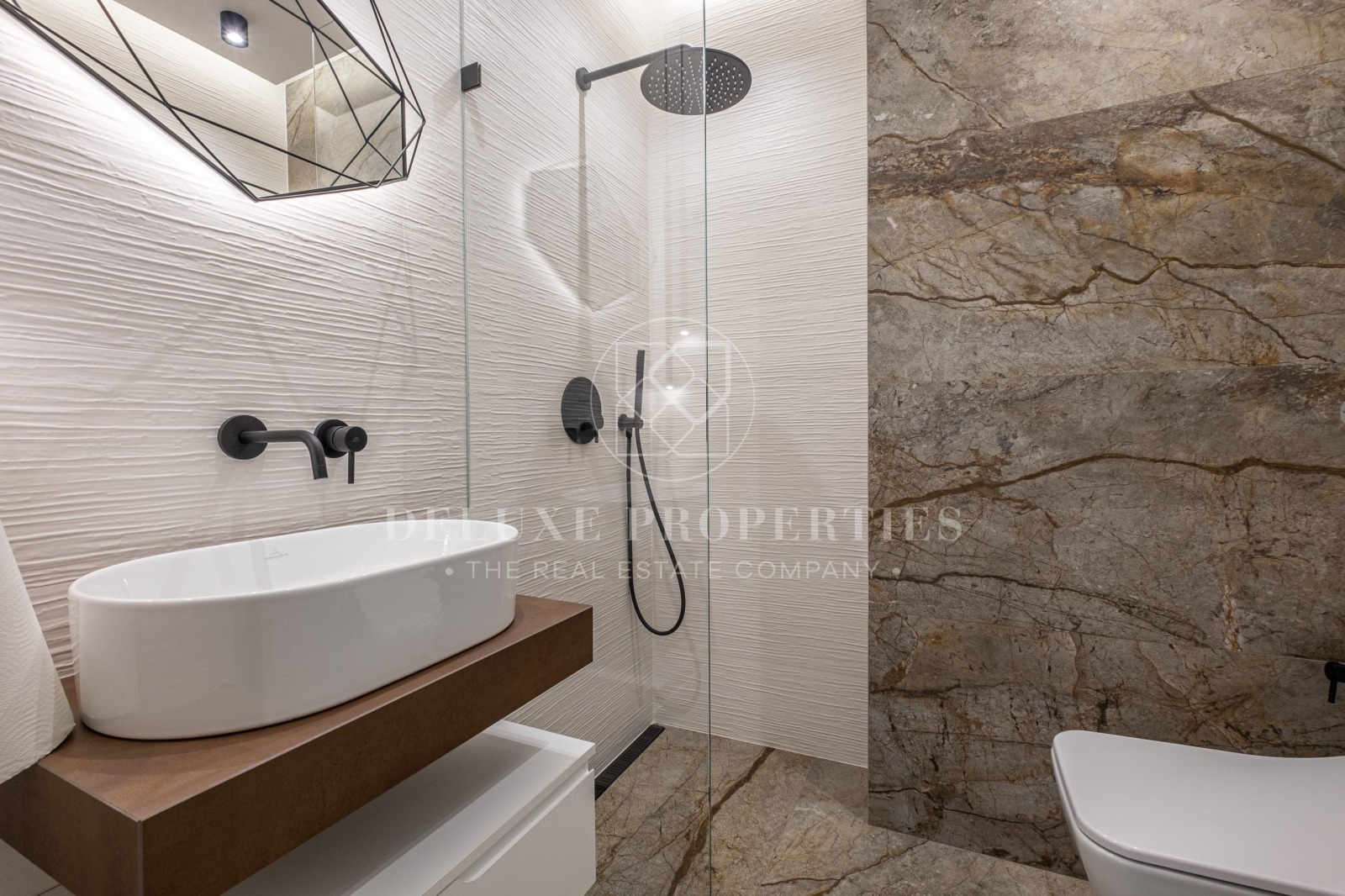 Жилището е изцяло реновирано с внимание към всеки детайл - висококачествени материали, масивни естествени подови настилки от паркет опушен дъб, подово отопление и луксозна санитария. Стаите са светли и просторни, благодарение на изложението - изток, запад, юг, високите тавани, френските прозорци и стилното обзавеждане. Напълно обзаведено и оборудвано с висок клас мебели и техника. По проект апартаментът е с три спални, но към момента са обособени две, всяка с дрешник.