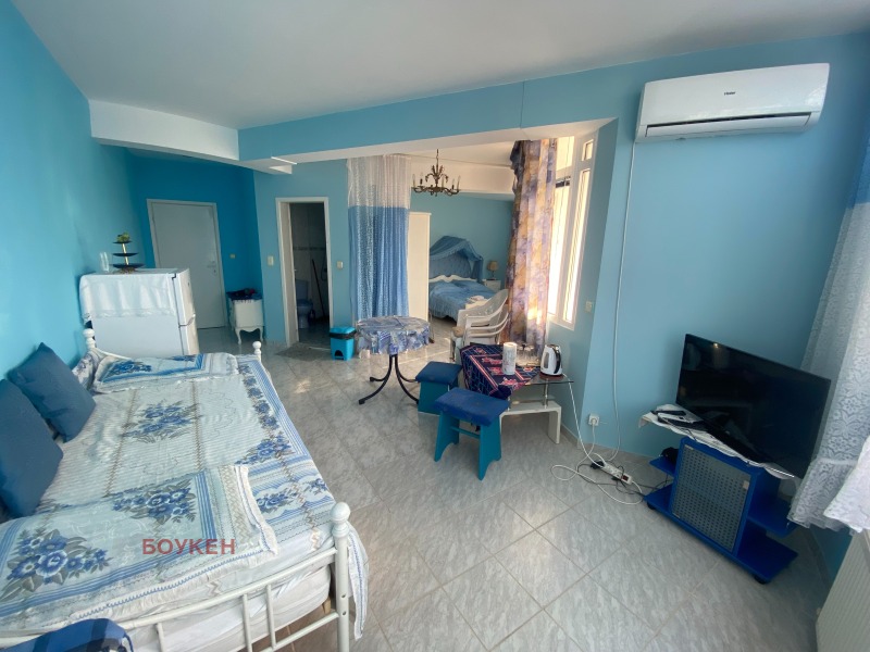 Продава се къща за гости с утвърден бизнес и редовни клиенти, разположена във вилната зона 'Фиш-Фиш' популярен район сред туристите. Имотът е с площ от 470 кв.м., а РЗП на къщата е 480 кв.м. Построена през 2001 г., със здраво тухлено строителство и поддържана през годините.