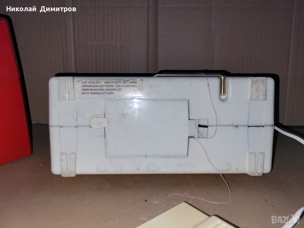 Малка шевна машина.Захранва се от 4 броя батерии 1,5 V R20