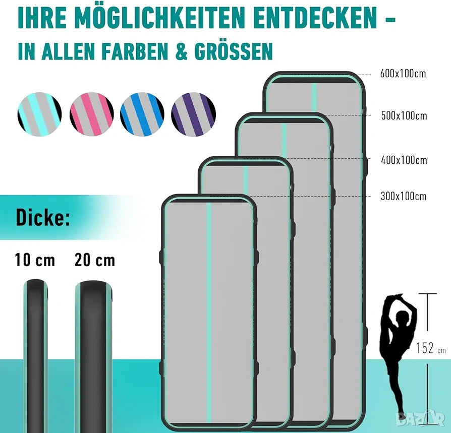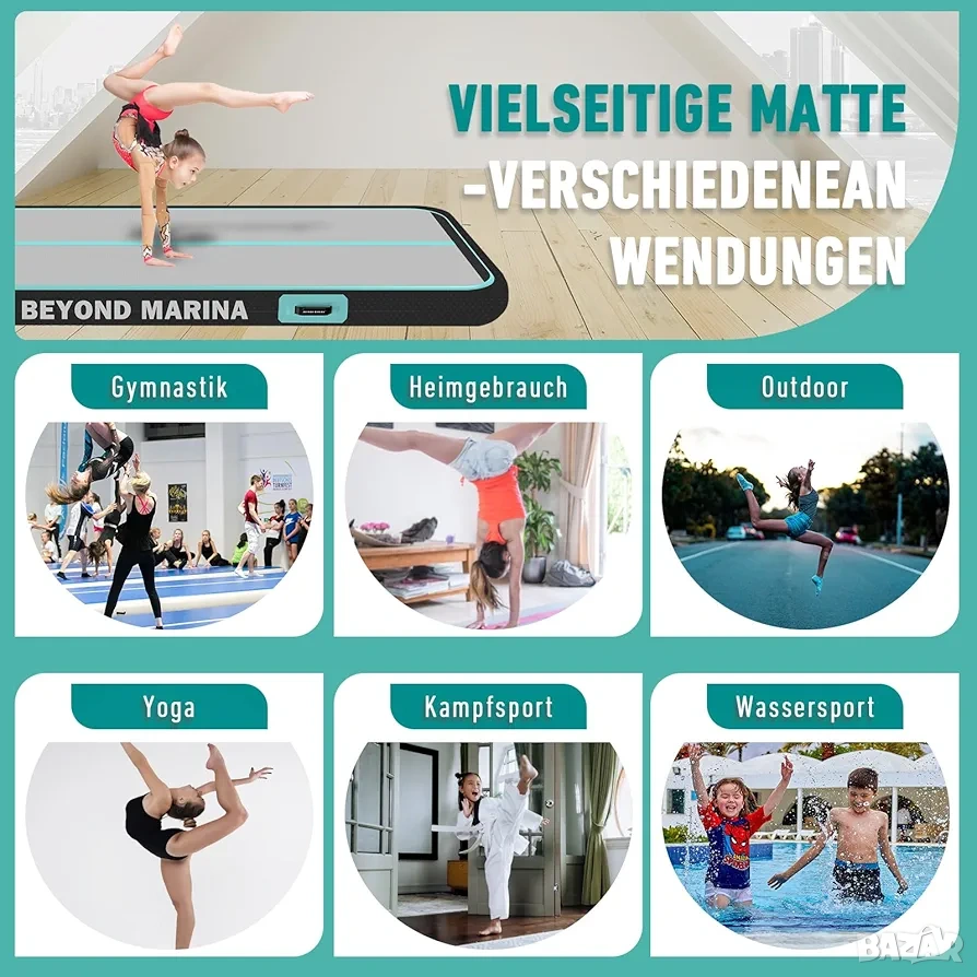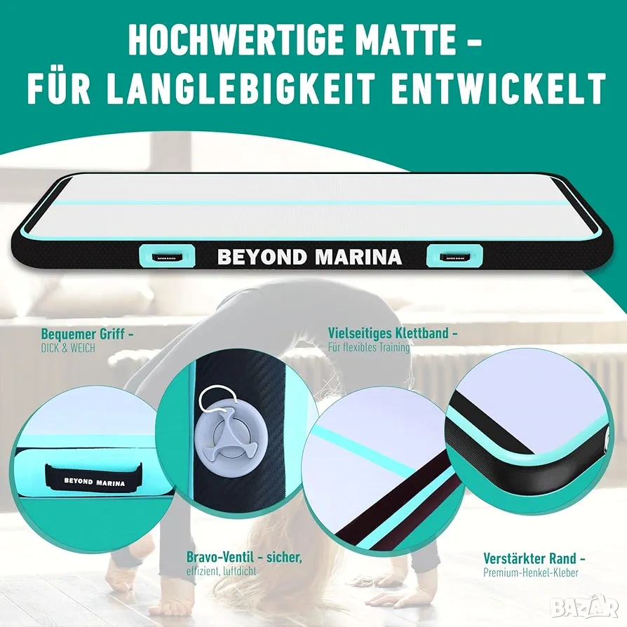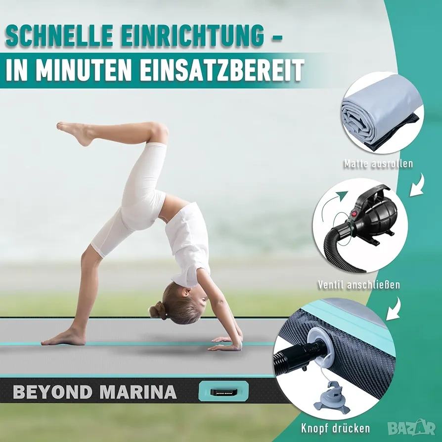 надуваема гимнастическа постелка, air track, акробатична пътека, постелка за йога, тренировъчен мат, Beyond Marina, спортна екипировка, водоустойчива постелка