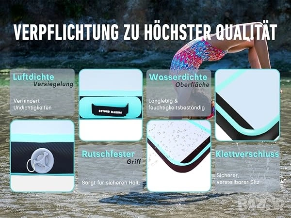 Надуваемата постелка за акробатика (Air Track) на Beyond Marina е проектира за професионална и любителска употреба, осигурявайки безопасна и стабилна повърхност за широк спектър от спортни дейности. Изработена чрез иновативна технология за двойна стена и подсилени материали, тя гарантира дълготрайност и устойчивост на интензивно натоварване. Подходяща е за гимнастика, йога, бойни изкуства, мажоретен състав, както и за забавление във вода или на открито.
