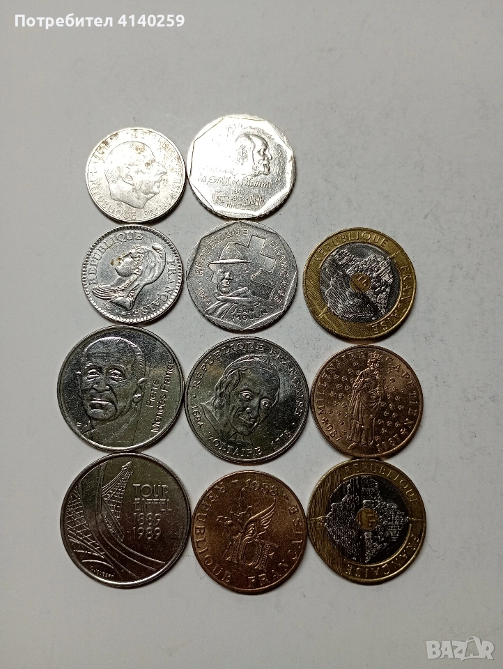 ФРАНЦИЯ МОНЕТИ 5 ФРАНКА 1989-1992-1994 Г 2 ФРАНКА 1993 -1998 Г 10 ФРАНКА 1988-1987 Г 1 ФРАНК 1988-1992 Г 20 ФРАНКА 1993-1992 Г НЕЧИСТЕНИ ЦЕНА ЗА 11 БРОЯ СЪСТОЯНИЕ ОТЛИЧНО ПОЛУЧАВАТЕ СНИМАНИТЕ МОНЕТИ РАЗГЛЕДАЙТЕ ДРУГИТЕ МИ ОБЯВИ ДА КОМБИНИРАТЕ ДОСТАВКА ЕКОНТ ЗА ВАРНА ЛИЧНО