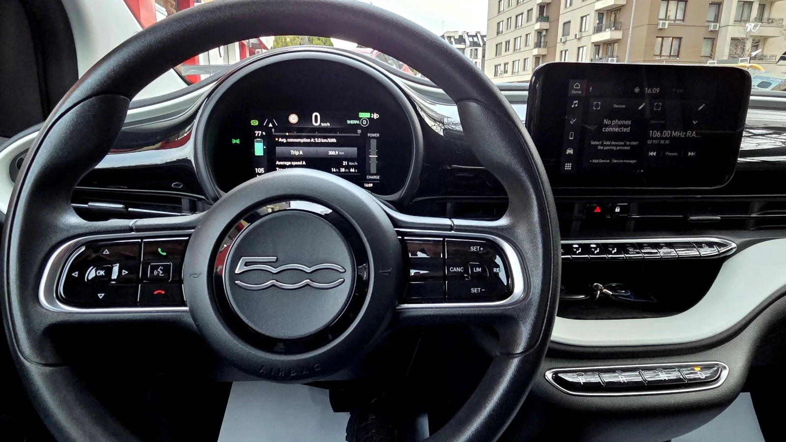 Germany Electric Cars Ви предлага Fiat 500e. В Гаранция закупен от Представителството в България. Един собственнник. Налична сервизна КНИЖКА. Платено КАСКО. Кара се ежедневно. Автомобилът изглежда като чисто нов без никакви забележки. Оборудване: Амбиентно осветление Електрически регулируеми и отопляеми външни огледала, от двете страни Деактивиране на въздушната възглавница за пътника Електрически предни стъкла Индуктивна зарядна станция за смартфони (безжично зареждане) Инфотейнмънт система: UConnect 5 с навигационна система, DAB+ и Bluetooth система за свободни ръце (7" сензорен екран) Климатик Радио и зимен пакет Цифрово радио приемане (DAB+) Сензор за дъжд/светлина Отопляеми предни седалки Интерфейс за смартфон (Apple CarPlay и Android Auto) USB порт Безопасност/Околна среда Въздушни възглавници за водача/пътника Контрол на сцеплението (ASR) Автоматично активиране на фаровете/сензор за светлина Електронна програма за стабилност (ESP/ESC) Система за подпомагане на водача: Асистент за внимание Система за подпомагане на водача: Автономно аварийно спиране (AEB) Система за подпомагане на водача: Спирачен асистент Система за подпомагане на водача: Асистент за поддържане на лентата Система за подпомагане на водача: Разпознаване на пътни знаци Предна система за въздушни възглавници за глава Система за спешни повиквания (eCall) Предни странични въздушни възглавници LED дневни светлини Други 4 високоговорителя Тип задвижване: Предно задвижване Автоматично активиране на фаровете (Follow Me Home) Селектор за режим на шофиране Трансмисия за електрическо превозно средство Държач за смартфон LED задни светлини Отопляемо задно стъкло 23, 8 kWh литиево-йонна батерия 7-инчов цветен инструментален панел Тип каросерия: 3-врата Задни облегалки за глава Кабел за зареждане с щепсел Schuko (режим 2) Кормилна колона (Волан) Регулируем по височина Функция памет за предната лява седалка Мобилни онлайн услуги UConnect Live Задна светлина за мъгла Задвижване с един педал (електронен педал на газта) Електрическа ръчна спирачка Отопляеми чистачки на предното стъкло Бързо зареждане 50 kW (DC) Тапицерия от плат 4-посочно електрическо регулиране на шофьорската седалка Специално плътно боядисано покритие Осветени сенници с огледала 12V електрически контакт отпред Топлоизолиращо стъкло Дистанционно централно заключване адрес: гр София ул. Иван Странски 1 срещу блок 61 вход В