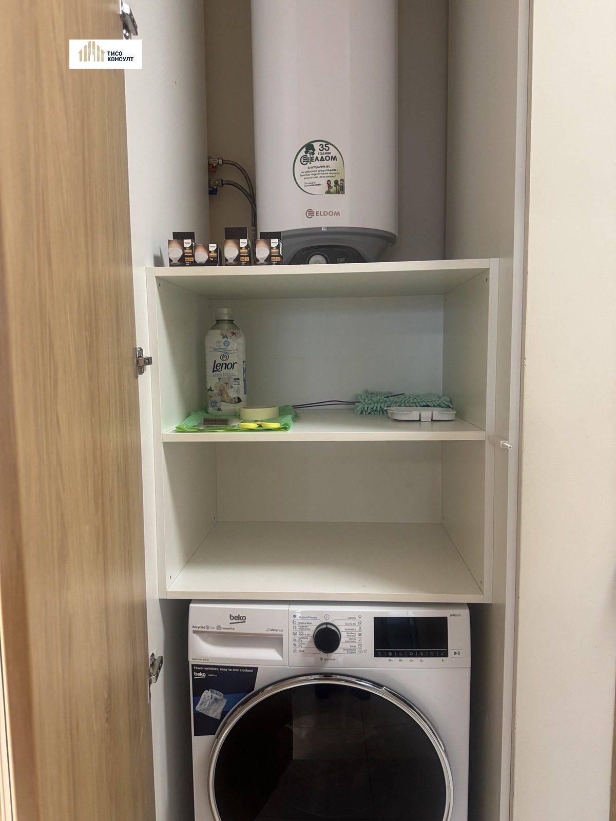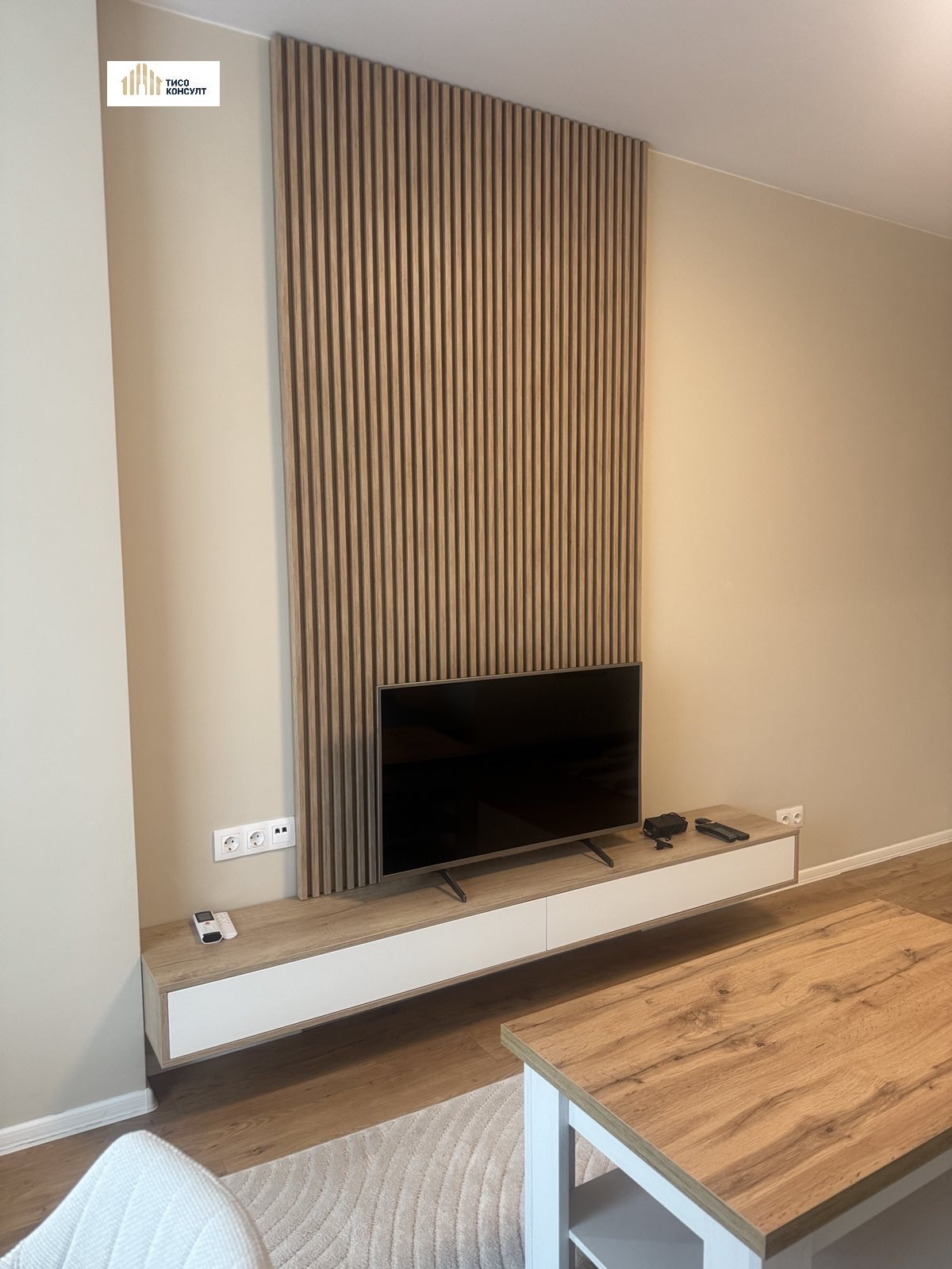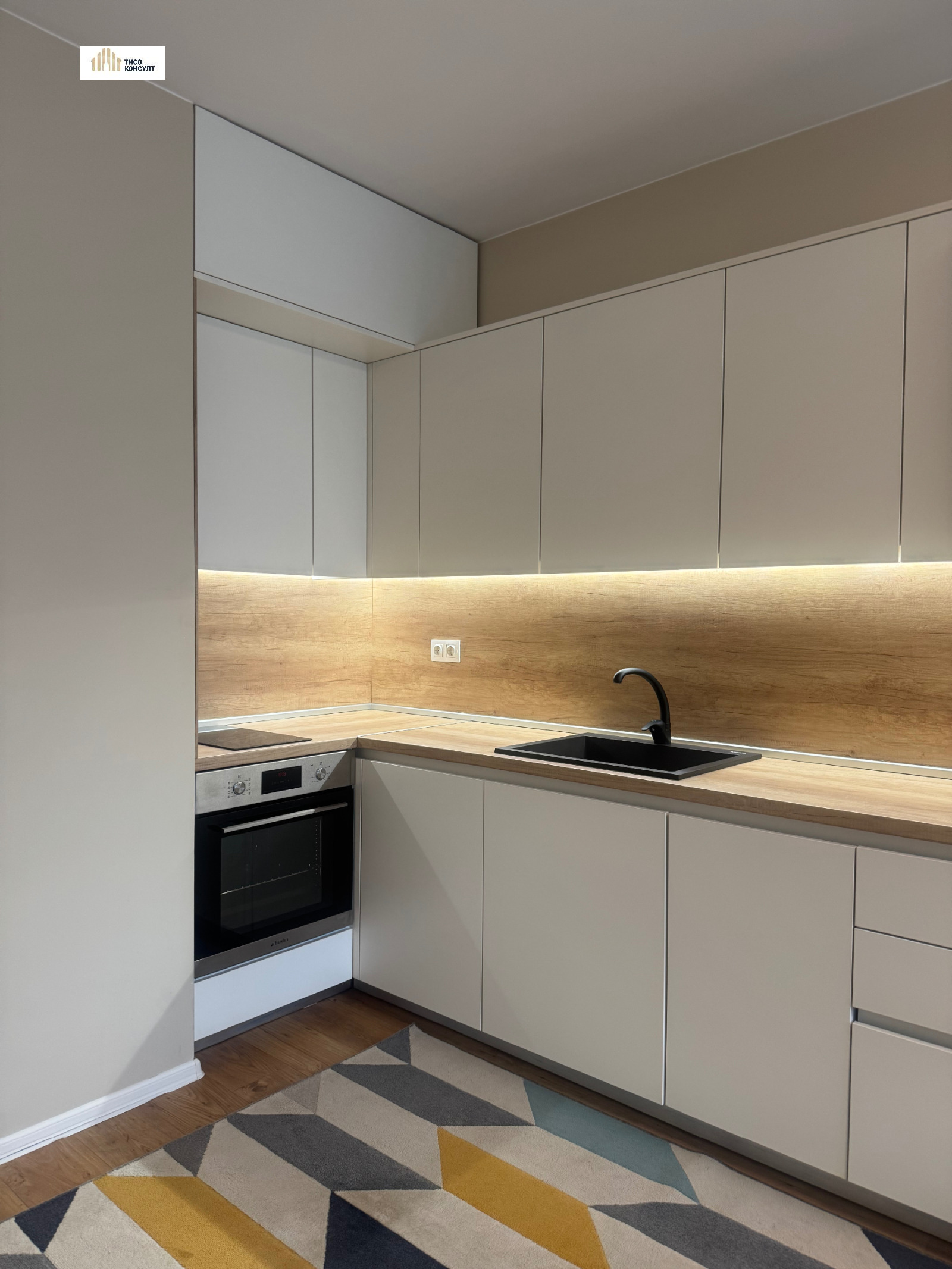 Жилището има следното функционалнон разпределение: входно антре /с пералня/, просторна дневна с изцяло оборудван кухненски бокс с всичко необходимо за едно домакинство /абсорбатор, миялна, индокционни котлони/, балкон, непреходна спалня, баня с тоалетна.