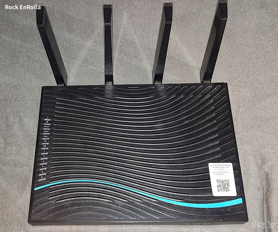 Netgear Nighthawk X8 (R8500) AC5300 116€ Рутера е в перфектно техническо състояние ! Работи без никакви проблеми ! Инсталирана последна версия фърмуер ! Netgear Nighthawk X8 (R8500) AC5300 Smart WiFi рутер е следващата вълна в WiFi. Трибандовата WiFi и Quad Stream производителността повишават комбинираните безжични скорости на X8 до 5.3Gbps. Четири външни активни антени плюс четири вътрешни антени усилват WiFi обхвата. Шест гигабитови Ethernet порта означават, че още повече кабелни устройства могат да се свързват, а с агрегиране на портове 2 порта могат да се комбинират, за да удвоят максималните кабелни скорости. Nighthawk X8 е следващата вълна в WiFi. Управлявайте домашната си мрежа с гласови команди, използвайки Amazon Alexa и Google Assistant. Спецификации на Netgear Nighthawk X8: * WiFi технология: 802.11ac * Безжична скорост: до 5.3Gbps * WiFi производителност: AC5300 (1000 + 2166 + 2166 Mbps) * Обхват на WiFi: Много големи домове * WiFi честотна лента:Едновременен трибандов WiFi - Tx/Rx 4x4 (2.4GHz) + 4x4 (5GHz) + 4x4 (5GHz) * Формиране на лъча: Имплицитно и експлицитно формиране на лъча за 2.4 и 5GHz диапазони * Брой Ethernet портове: - Седем (7) 10/100/1000 Mbps Gigabit Ethernet порта (1 WAN и 6 LAN) - Агрегиране на два Gigabit Ethernet порта * Брой USB портове: Два (2) USB порта: 1 USB 3.0 и 1 USB 2.0 порт * Основни характеристики: - Smart Connect интелигентно избира най-бързата WiFi лента за всяко устройство - Load Balancing разпределя WiFi устройствата, осигурявайки използване и на двете 5GHz WiFi ленти - MU-MIMO съвместимост - едновременно стрийминг на данни за множество устройства - Осем (8) високопроизводителни антени с мощни усилватели * Сигурност: - Персонализиран безплатен URL адрес за настройване на личен FTP сървър - VPN поддръжка - сигурен отдалечен достъп - Достъп до мрежата за гости - отделен и сигурен - Защитен WiFi достъп (WPA/WPA2—PSK) - Двойна защитна стена (SPI и NAT) - Предотвратяване на атаки тип „отказ от услуга“ (DoS) * Процесор: Мощен двуядрен 1.4GHz процесор * Памет: 128 MB флаш памет и 512 MB RAM памет * Размери: 12,44 x 10,39 x 2,40 инча (316 x 264 x 61 мм) * Тегло: 1680 г