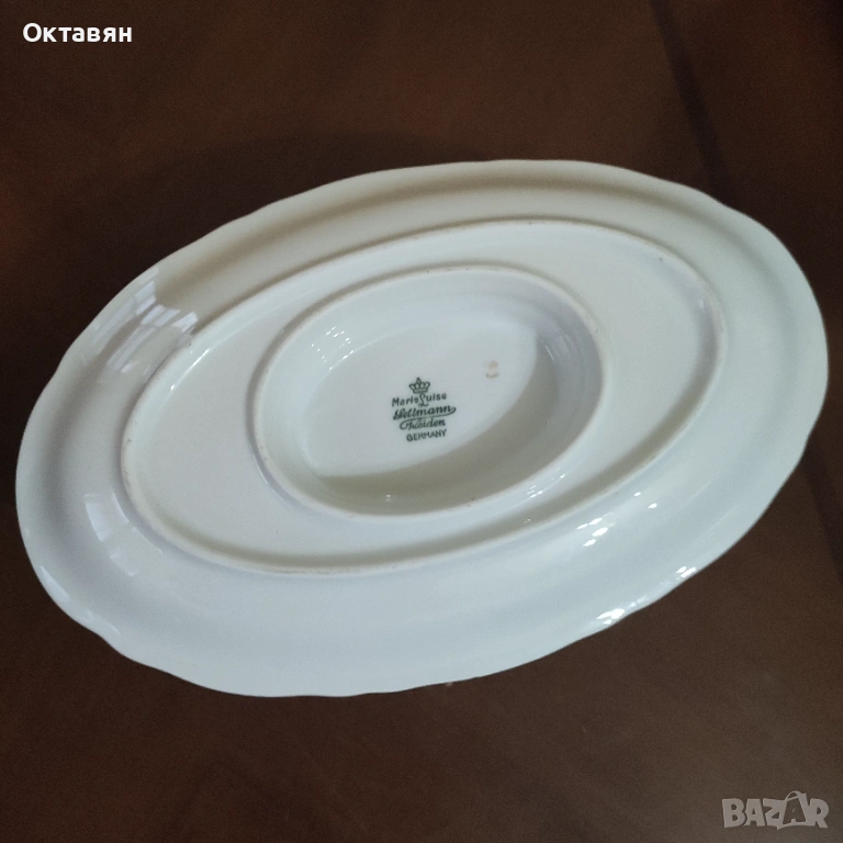 Сосиера - дължина- 15,5 см, широчина - 10 см, основа -20 см, маркирана със златист номер за лимитирана серия и маркер Бавария-Германия Златни кантове, без забележка. Изпращам с Еконт с 10% отстъпка.
