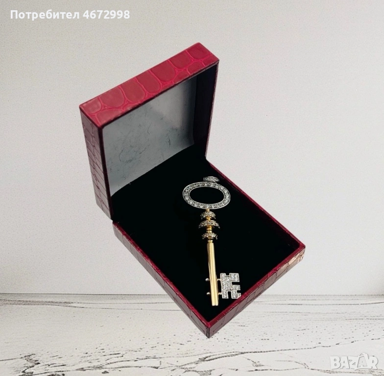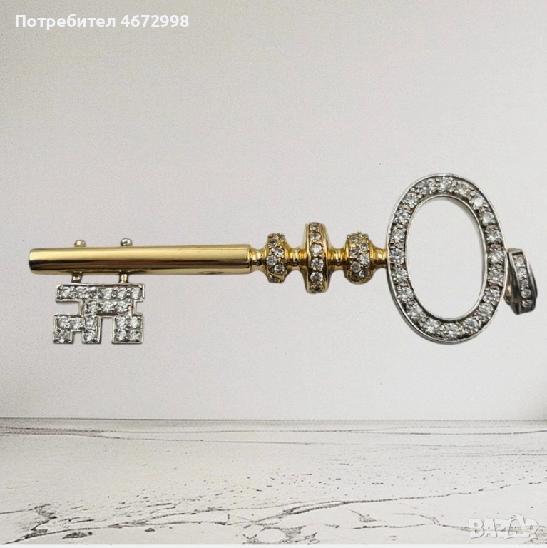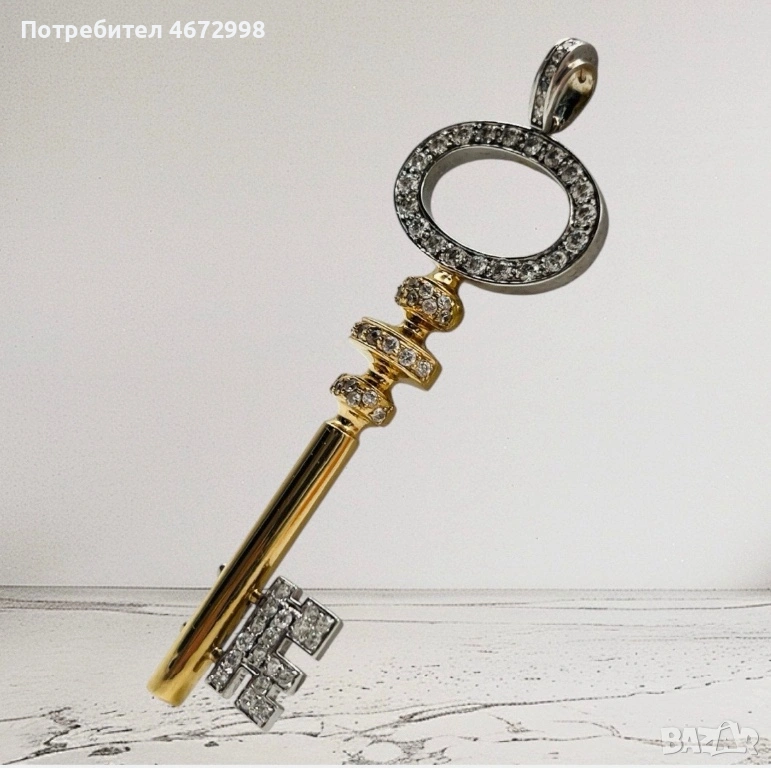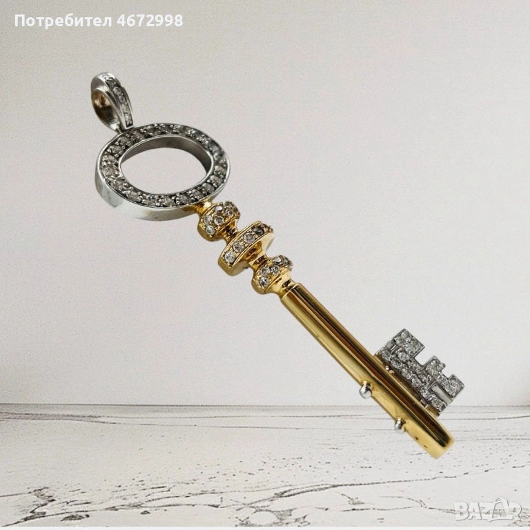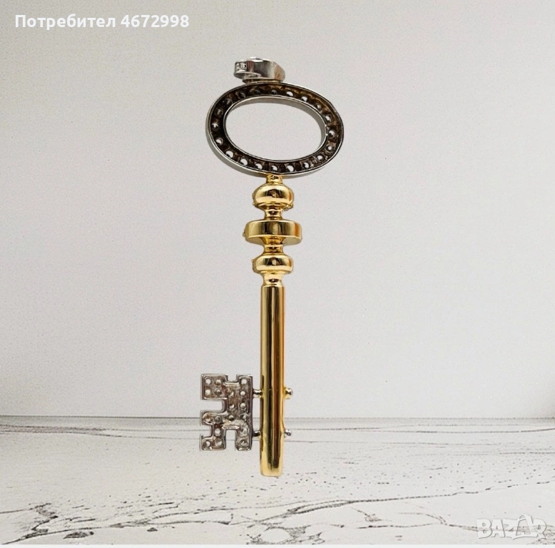 Изящно изработен златен ключ от 14-каратово злато (проба 585) плътно злато не е кух , украсен с блестящи циркони за допълнителен блясък и елегантност. Символиката на ключа носи послание за ново начало, късмет и отваряне на врати към успеха.