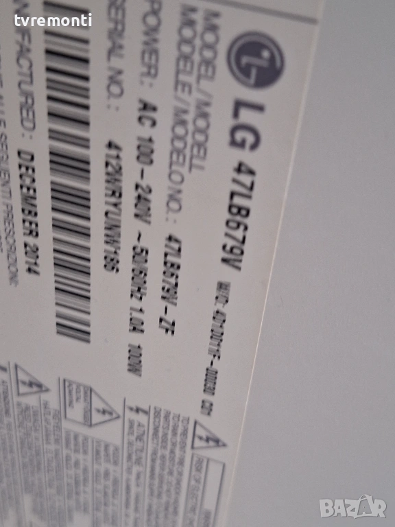 POWER BOARD,LGP42-14LPB ,EAX65424001(2.4), за 47-инчов телевизор LG 47LB679V с дисплей LC470DUH-PGF1 Платката е използвана, но гарантирано работеща, демонтирана от телевизор със счупен дисплей. Тествана е от нашия техник.
