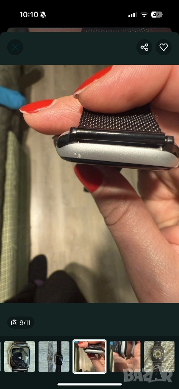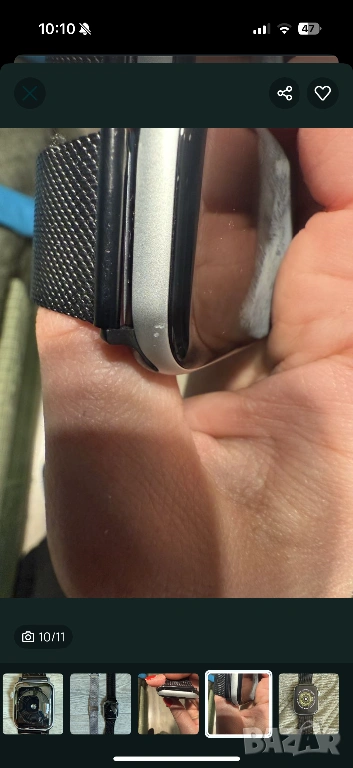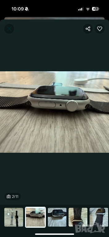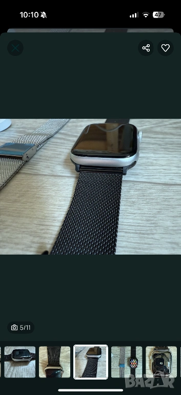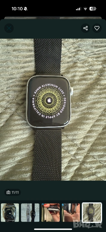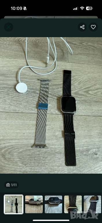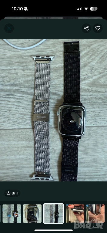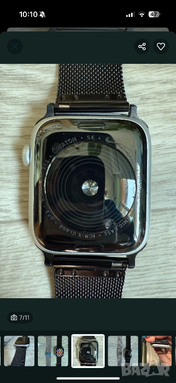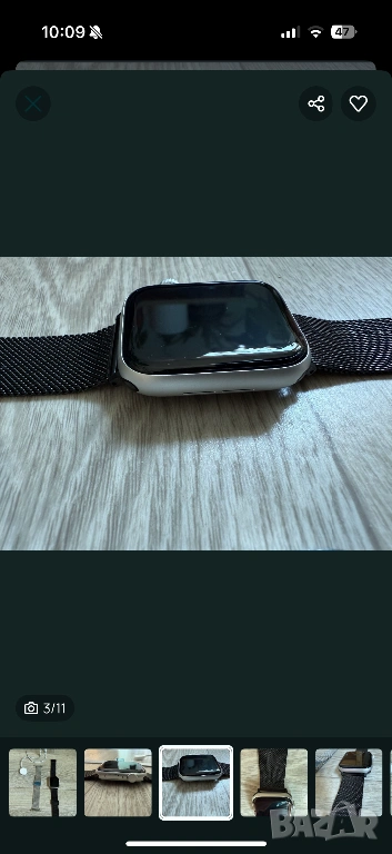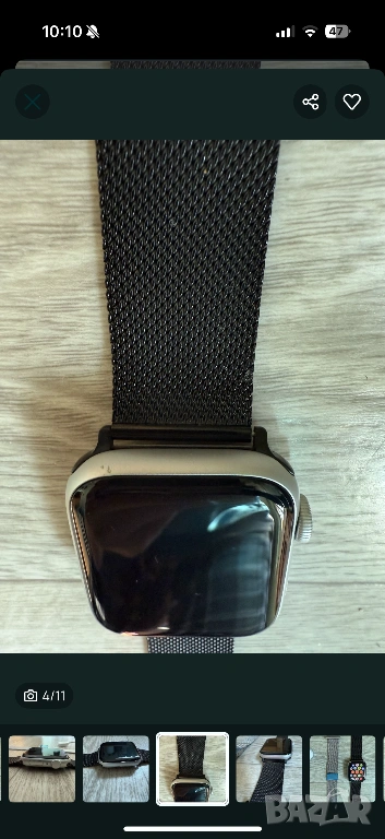 Часовника почти не е използван. Върви си с оригинално зарядно и две чисто нови каишки. Черна и сребриста. Има съвсем лека и незабележима драскотина по корпуса, на снимките се вижда. Работи си перфектно.