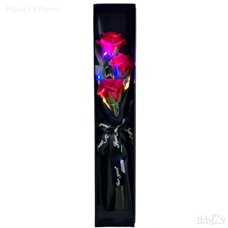 Вградено LED осветление добавя магическо сияние и превръща букета в истинско бижу – перфектен акцент за всеки специален момент.