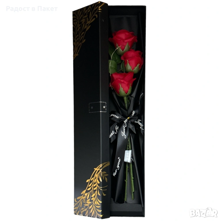 Подарете емоция, която не увяхва. Този изискан подаръчен букет от 3 вечни червени рози е символ на любов, страст и внимание, запечатани във времето. Розите са подредени в стилна луксозна кутия с черно-златен дизайн, която подчертава тяхната красота и прави подаръка още по-впечатляващ.