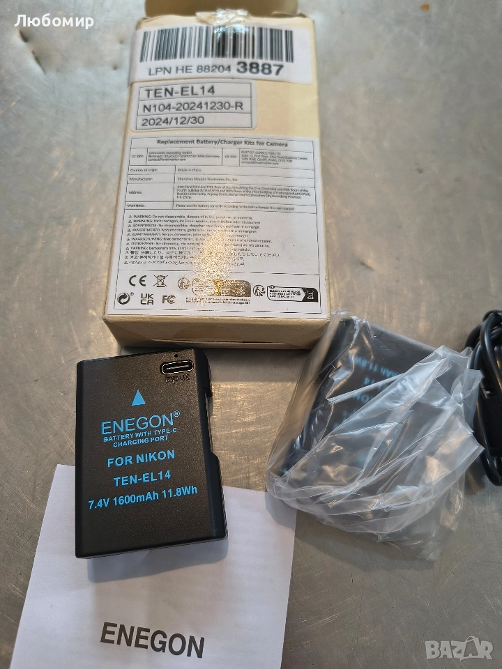 ENEGON EN-EL14/EN-EL14a Батерии за зарядно устройство тип C 1600mAh Съвместими с Nikon DSLR D3100, D3200, D3300, D3400, D3500, D5100, D5200, D5300, D5500, D5600, DF Coolpix P7000, P7100, P7700, P7800.зареждайте в движение без обемисти аксесоари. Само с един USB-C кабел можете да зареждате две батерии Nikon EL14/EN-EL14a по всяко време и навсякъде. Идеална за пътуване и употреба на открито, батерията ENEGON EN-EL14/EL14a може да се зарежда с устройства като лаптопи, външни батерии, зарядни устройства за кола и други, осигурявайки значително удобство при зареждане.