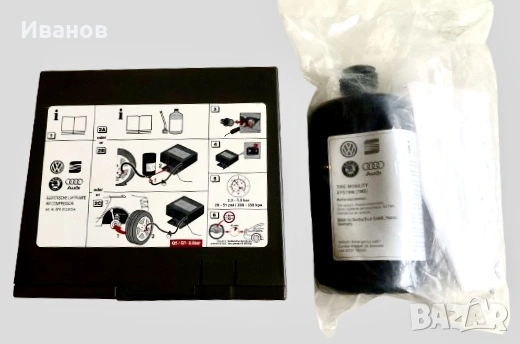 Нов оригинален компресор за автомобилни гуми - AUDI - VW - SEAT - SKODA. Универсален - за всяка марка Автомобили. Лепило/Пяна. Авто компресор на 12V.