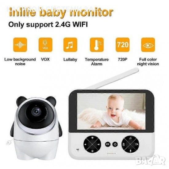 Baby Monitor е надеждно решение за родители, които търсят сигурност и удобство при наблюдение на своето бебе. С 4.3-инчов IPS дисплей, камера с висока резолюция и функция за автоматично въртене на 355 градуса, устройството осигурява ясен образ и широк обхват без нужда от WiFi или мобилно приложение.
