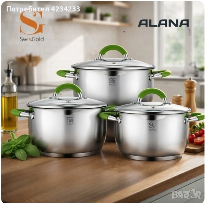 Комплект тенджери Swisgold Alana с 5-слойно капсулно дъно DJ11 + Подарък луксозен комплект прибори за хранене от 24 части KN2