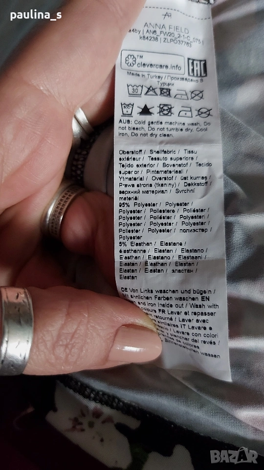 1️⃣. Колаж / XL / 2XL -"Anna Field" - Цената е крайна 50 евро. Убийствено красива рокля от ликра с разкрояване и прихлупващо деколте. Материята е тежка и много еластична ликра, пада по тялото, без да стърчи, а принтът е толкова красив, че бяга от камерата. Като нова, една бройка, покрива няколко размера. Като нова, една бройка, без дефекти и етикет.
