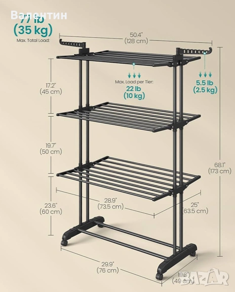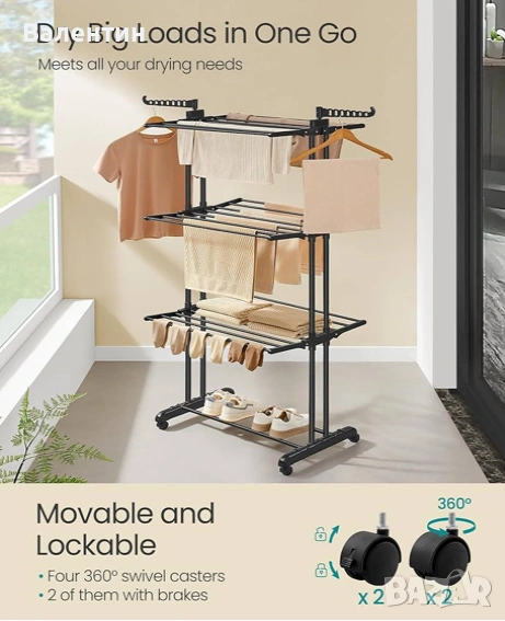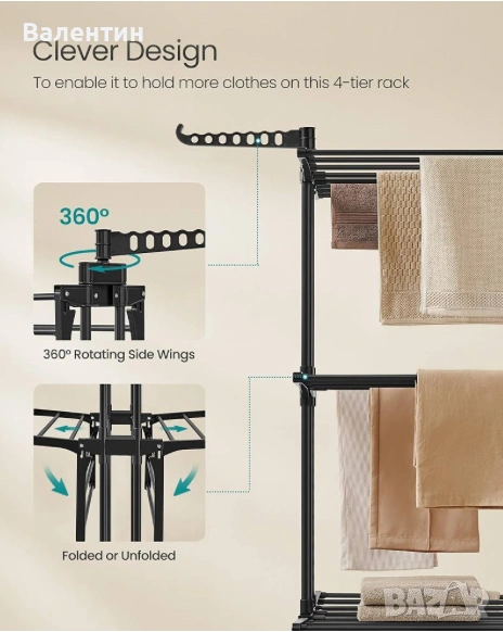 4-етажна, сгъваема стойка за дрехи
