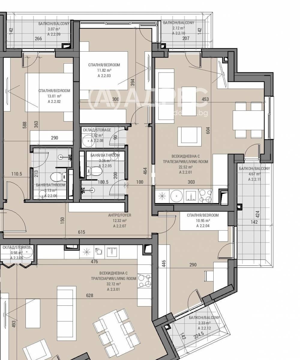 Състояние: шпакловка и замазка (Собственикът може да предложи довършване на имота до ключ, с допълнителна уговорка)