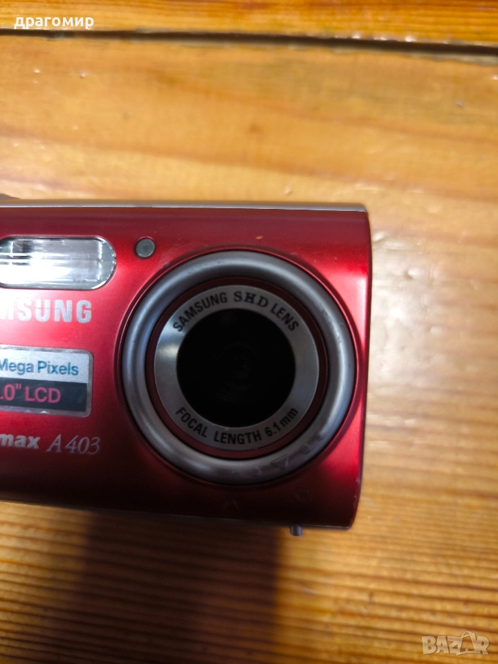 продавам компактен цифров фотоапарат, работи ,SAMSUNG Digimax A 403, с карта 1 GB, работи с две батерии АА по 1, 5 v, имам още много други фотоапарати, камери, обективи, чанти, светкавици, батерии, зарядни устройства, касети, филтри, ремъци, ленти, при закупуване на повече неща отстъпка