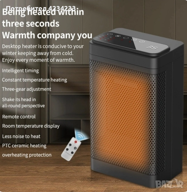 • В комплекта: отоплител, дистанционно с батерия CR2025, упътване