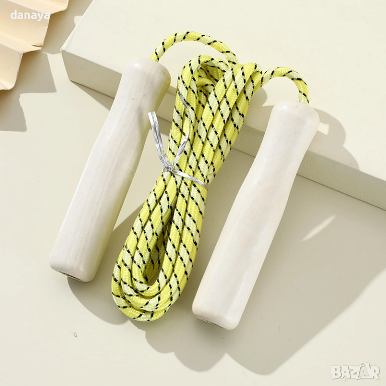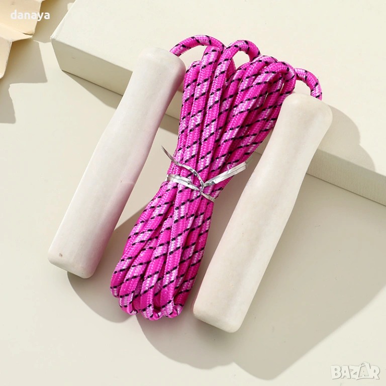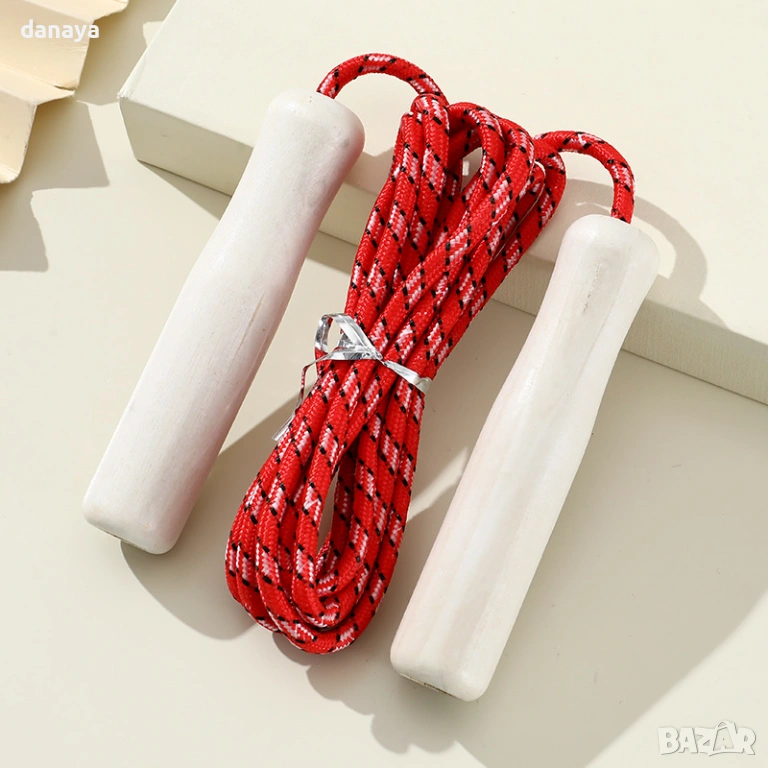 Въже за скачане с дължина 2 метра, подходящо както за деца, така и за възрастни. Класически модел с удобни дървени дръжки, които осигуряват стабилен захват и комфорт по време на тренировка или игра.