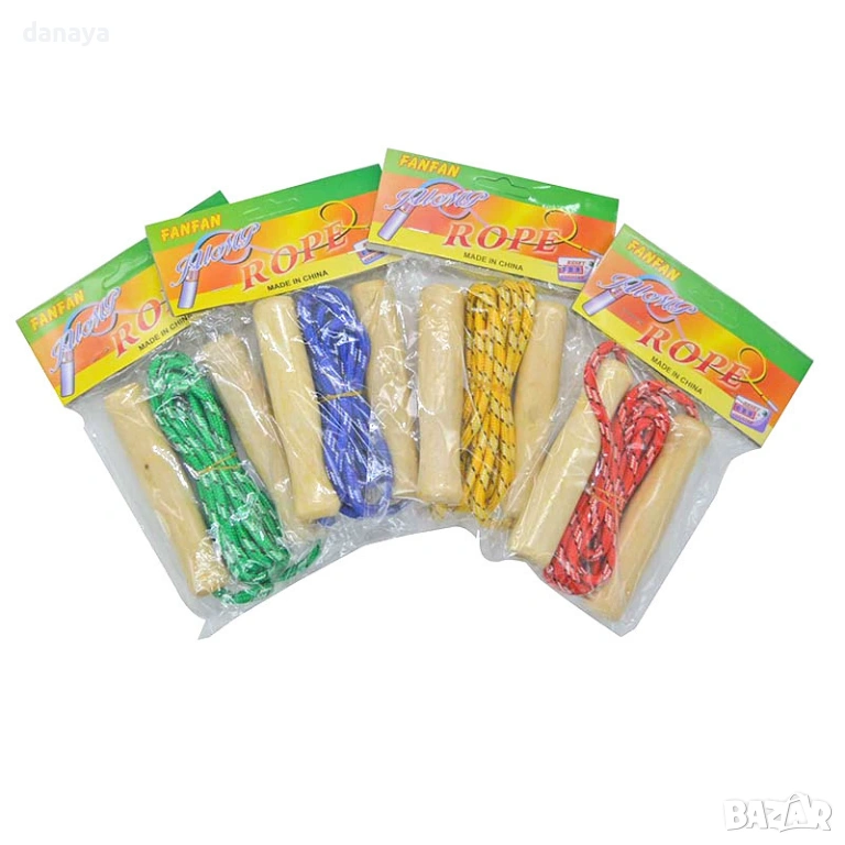 6372 Цветно спортно въже за скачане с дървени дръжки