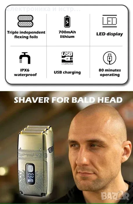 Професионална електрическа самобръсначка, vgr, водоустойчива, LCD дисплей,