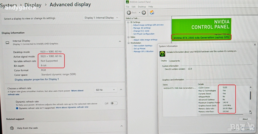 Версията с много скъпата видео карта NVIDIA RTX 3500 ADA 12GB GDDR6 и мощен процесор Intel Core i7-13850HX с 20 физически ядра / 28 нишки, до 5.30GHz, цели 30MB Кеш.