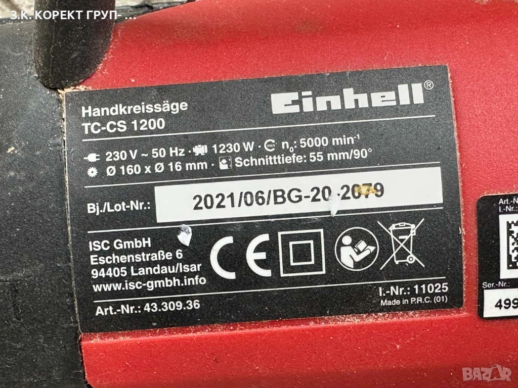 ръчен циркуляр EINHELL TC-CS 1200 в добро състояние. При интерес изпращам до офис на Еконт с опция за преглед и тест.