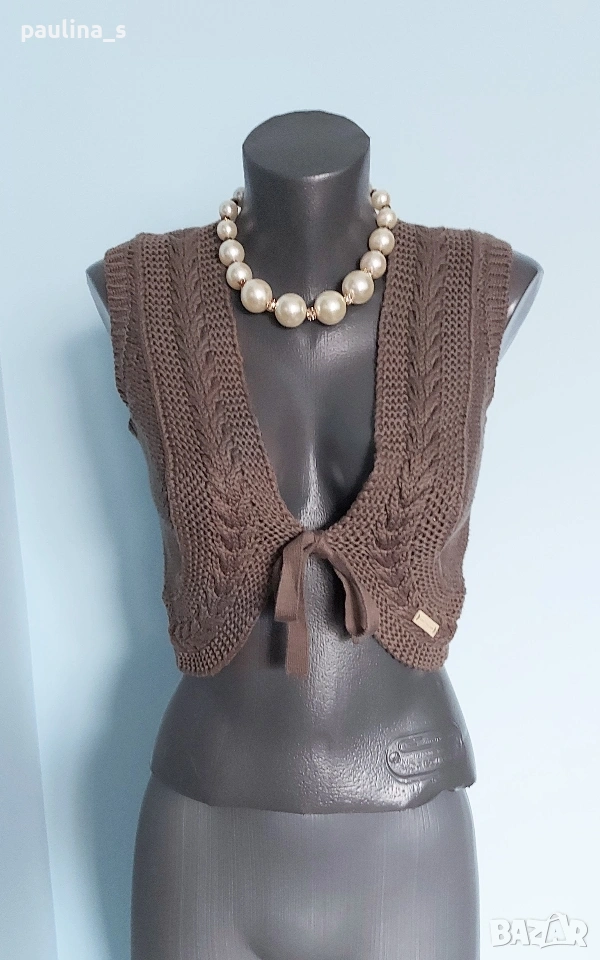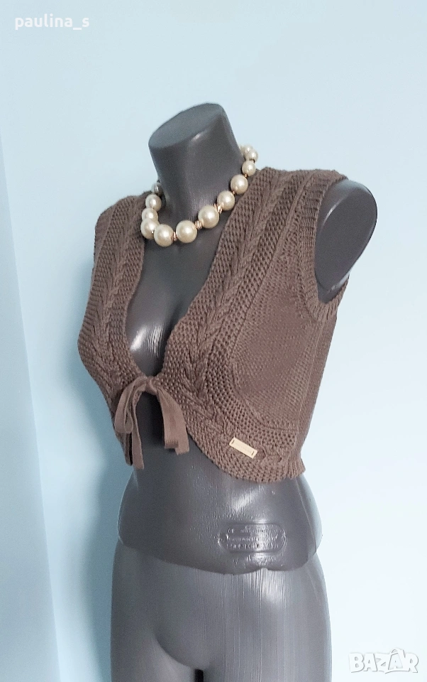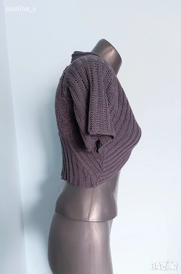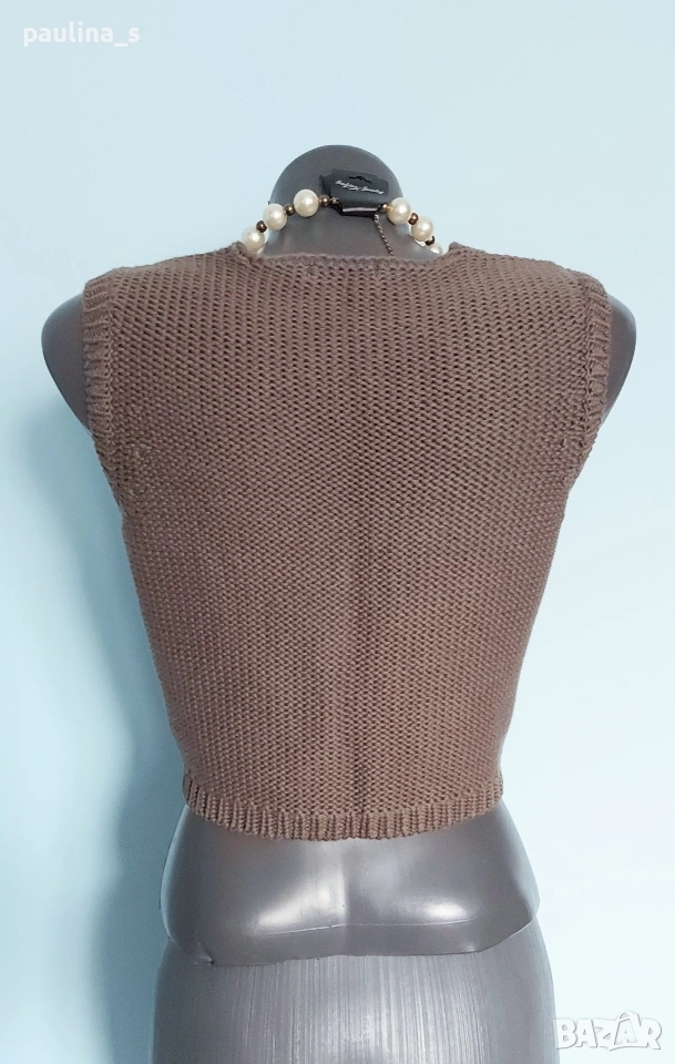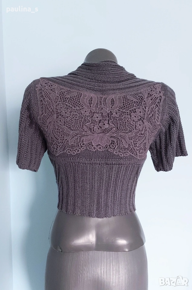 2️⃣. S / М - "Soulmate". Цената е крайна, без пазарлъци 15 евро. Плетен дизайнерски топ / къс елек с голяма дантелена декорация на гърба, много изискана дреха. Като нов, без дефекти и етикет.
