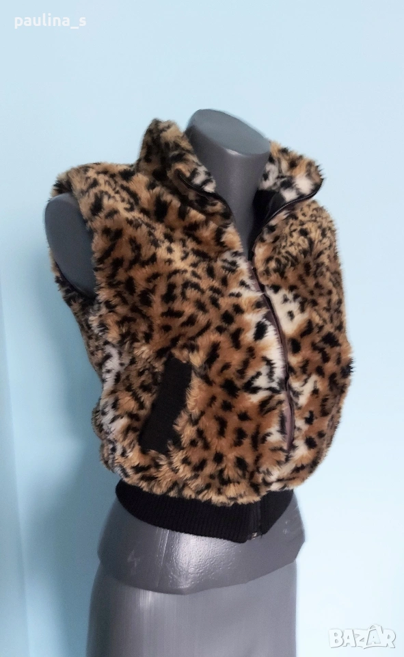 1️⃣. XS / S - Vintage / Made in Bulgaria. Къс елек в леопардов принт. Цената е крайна, без пазарлъци 12 евро. Къс елек с косъм в леопардов принт, българско производство за Валентина от време на соц-а. Перфектен е, малък размер.