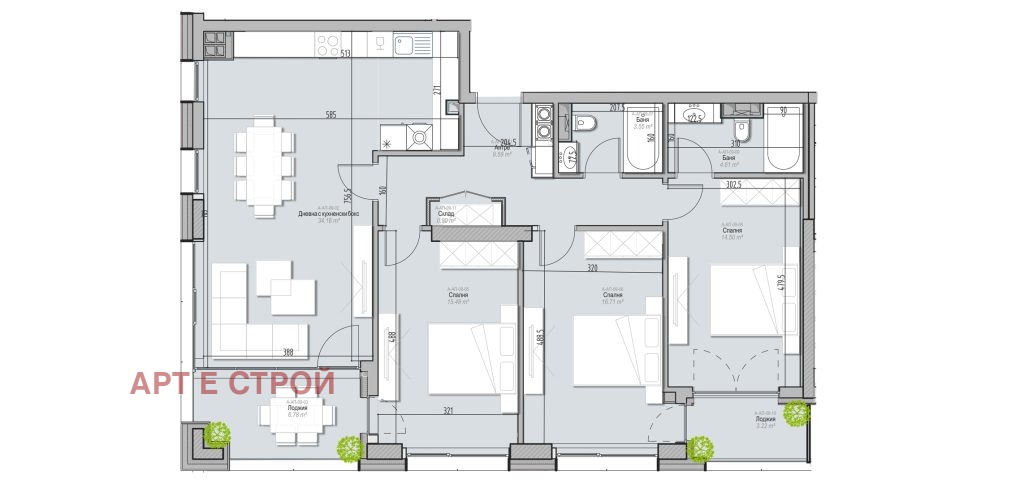 Арт Е Строй предлага просторен четиристаен апартамент в нова, висок клас многофункционална сграда, разположена на бул. Черни връх 105, в непосредствена близост до Южен парк и мол Парадайс.