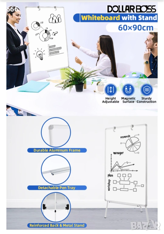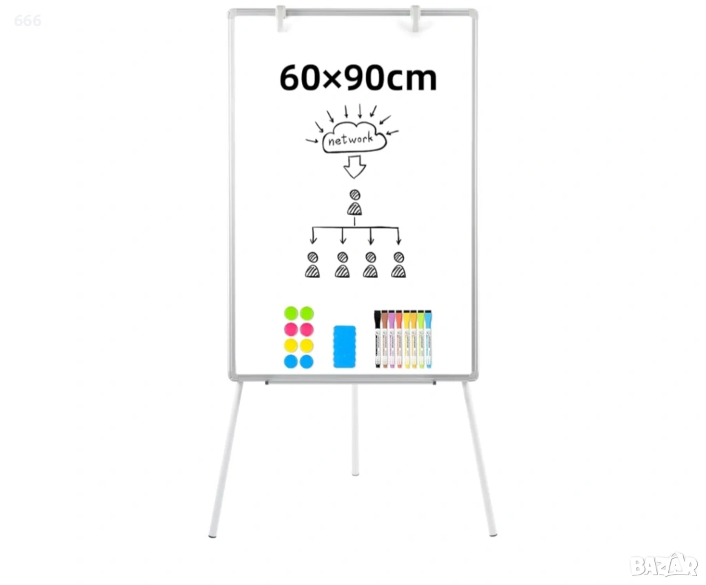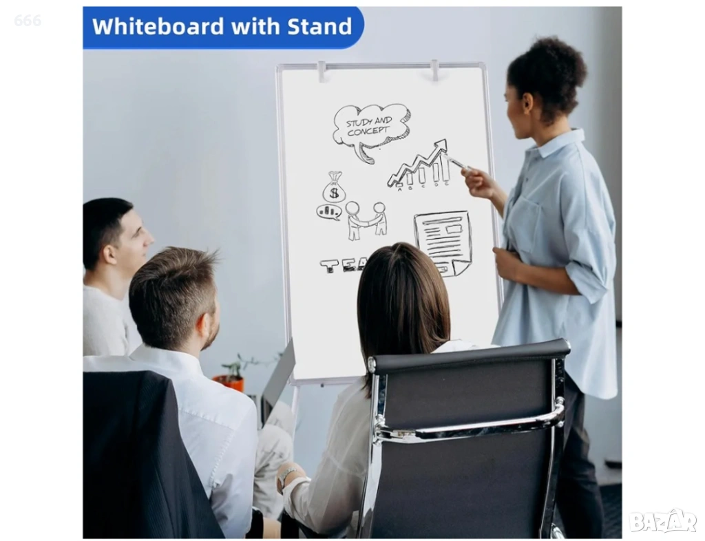 Стойка за флипчарт DOLLAR BOSS, магнитна бяла дъска 60×90 см с регулируема височина, преносима бяла